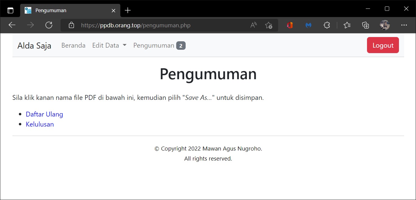 Anda saat ini sedang memakai aplikasi pertama, yaitu yang dipasang di setiap web server sekolah.